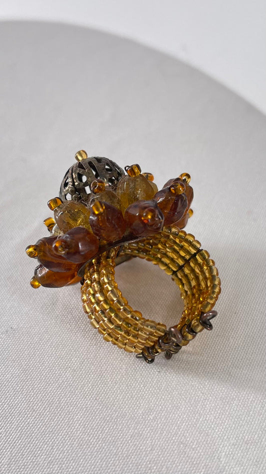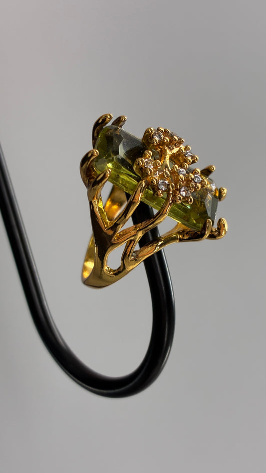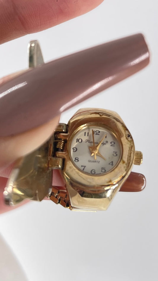 Vintage Sparkle/Glitter Gold Butterfly Ring with Watch