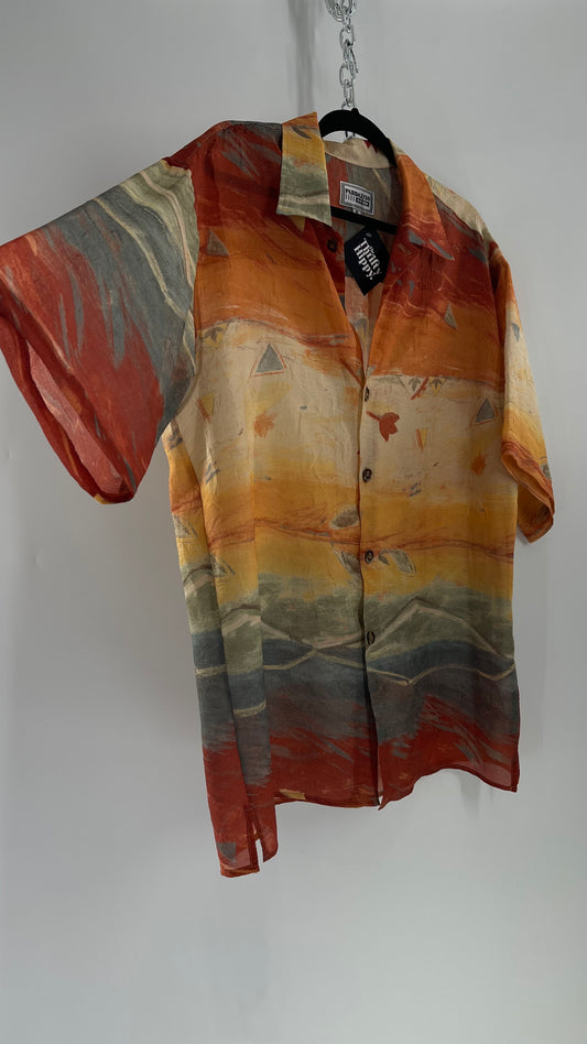Vintage Pardazzio Uomo Sheer Crimped Abstract Fall Short Sleeve Button Up (Medium)