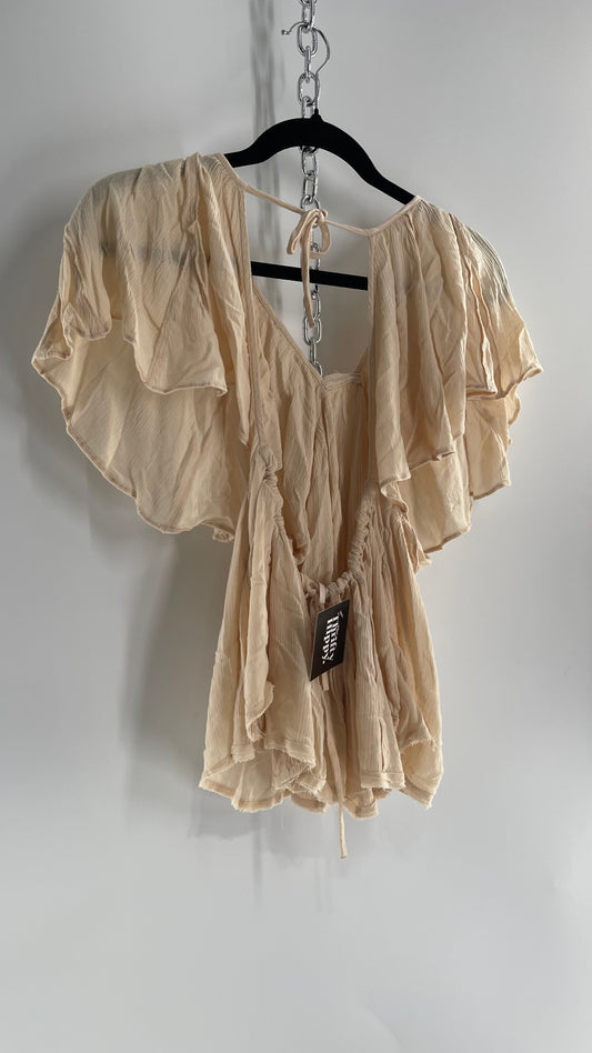 Free People Beige Open Back Drape Sleeve Blouse (XS)