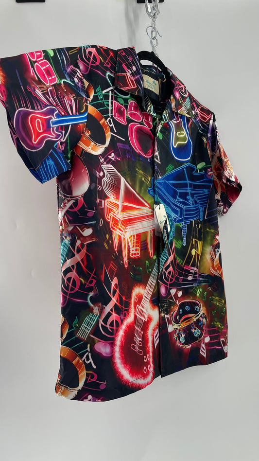 Deadstock Vintage Neon Music Motif Short Sleeve Button Up (Large)