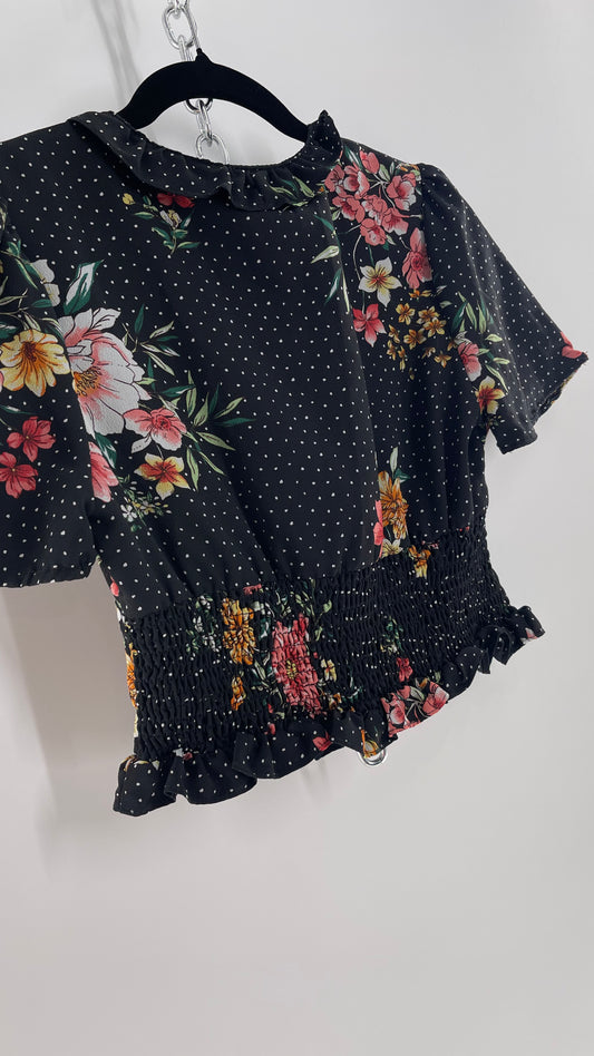 Lost &Wander Polka Dot Florals, Puff Sleeved Button Front (XS)