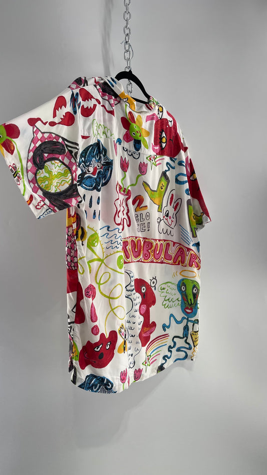 Urban Outfitters Happy Days Colorful Doodle Button Up (Large)