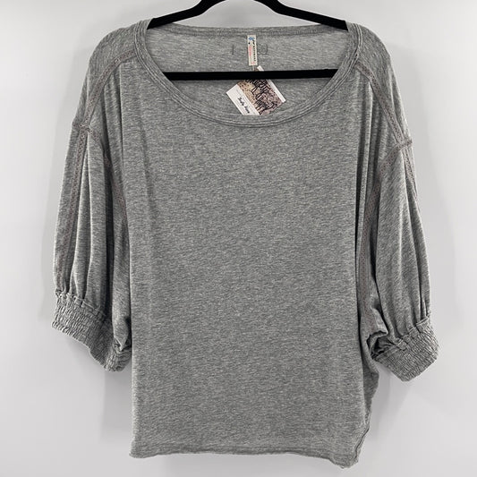 Free People 100% Cotton Colorful Florals Blouse with Deep V, Puff Sleeves, Button Front, and Tags Attached (Small)