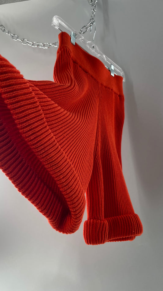 Free People Orange Red Thick Knit Cartoon High Waist Flare Shorts (XS)