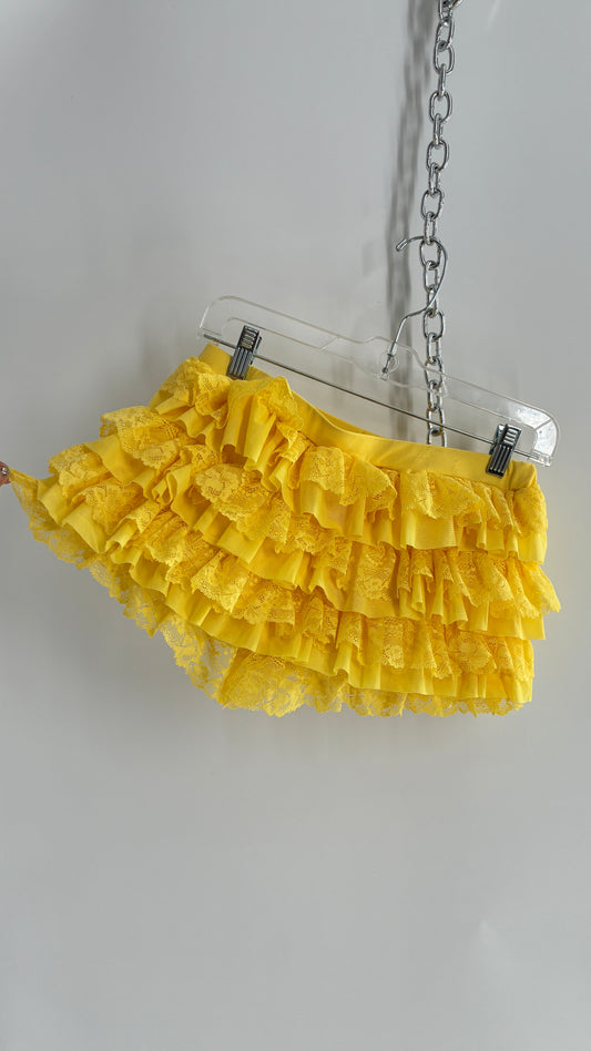 Vintage Yellow Lace Ruffle and Lace Micro Short (Small)