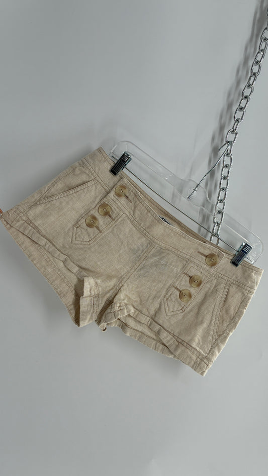 EXPRESS Beige Low Rise Micro Short with Hip Button Detailing (4)