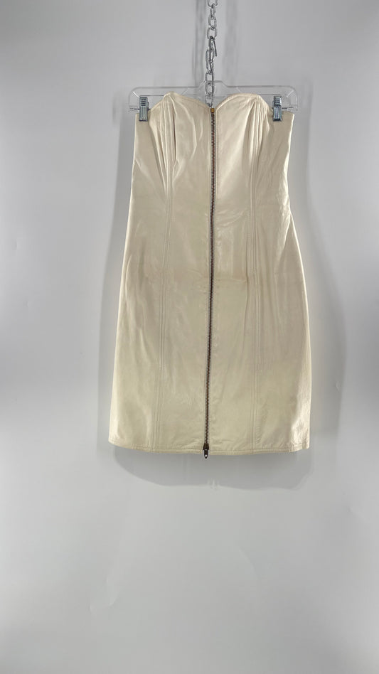 Vintage White Leather Zip Front Mini Dress *Handmade* (Size Small/Medium)