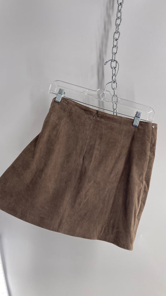 Vintage Studded Taupe Genuine Suede Leather Mini Skirt with Buckle Side Closure (Small)