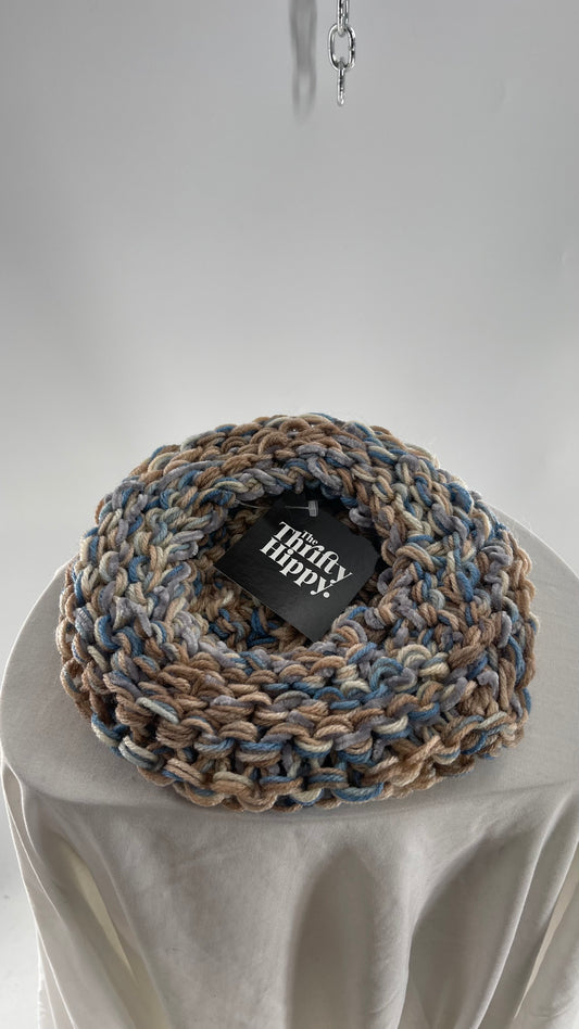 Vintage Handmade Blue/Grey/Brown Knit Beanie/Beret