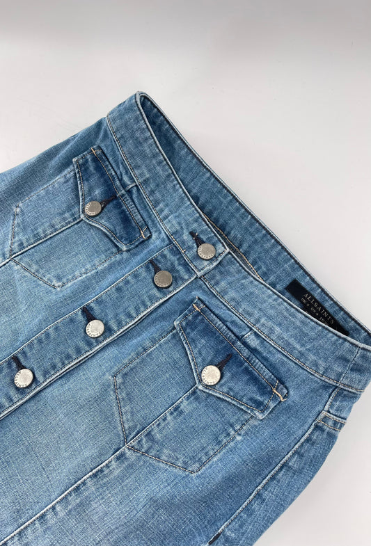 ALLSAINTS Light Wash Button Front Knee High Skirt (4)