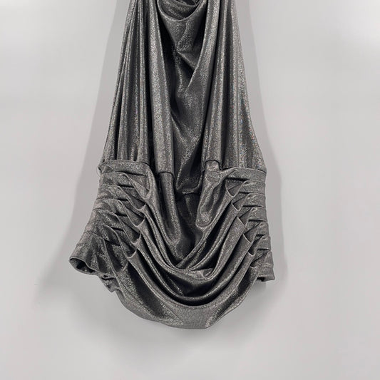 Wet Seal - Silver Sparkly Ruched Hem Midi Dress (Size Medium)