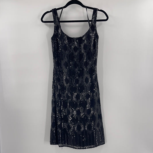Vintage Scala Sequin with Beaded Embellishments Black Sleeveless Mini Dress (Size 6)