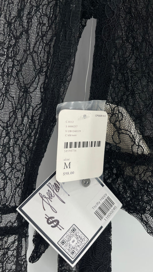 Free People Black Lace Bell Sleeve Tie Side Blouse (Medium)