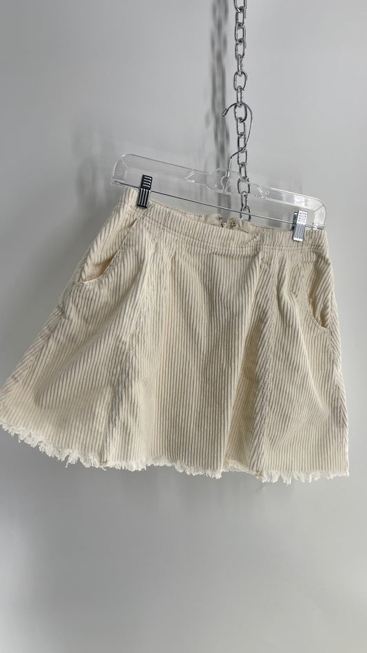 Free People White Corduroy Mini Skirt with Raw Edges (2)