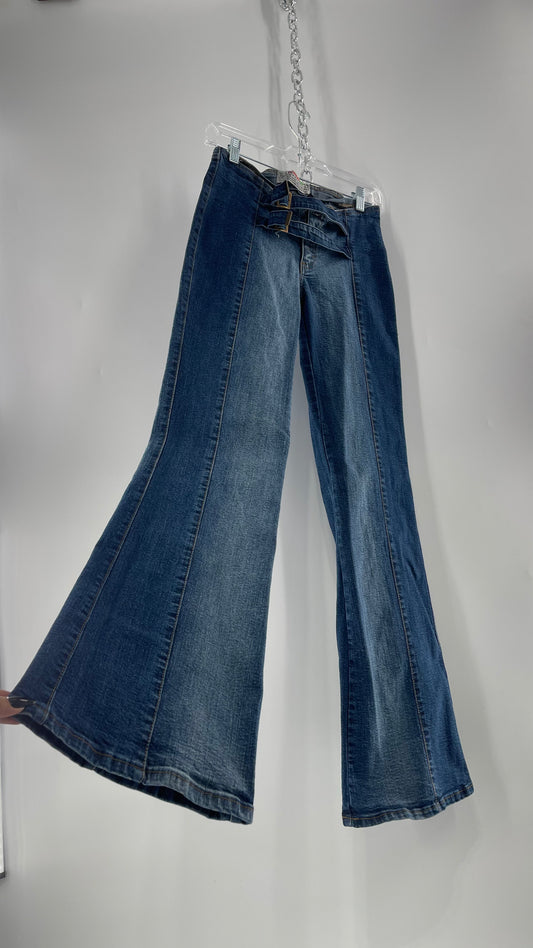 Vintage NewMax Two Toned Paneled Brazilian Jeans with Buckle Jean Strap Closure and Flared Hem (8)