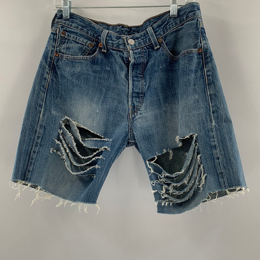 Vintage Frayed Levi 555 Shorts - Distressed Hem (Size Guys Fit 12)