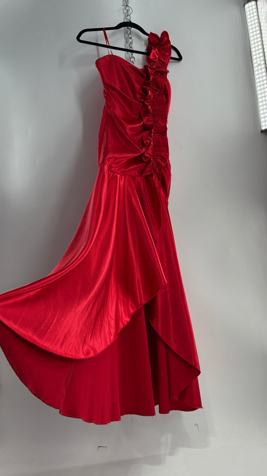 Vintage Ruby Rox Red Full Length One Shoulder Ruched Gown (3)