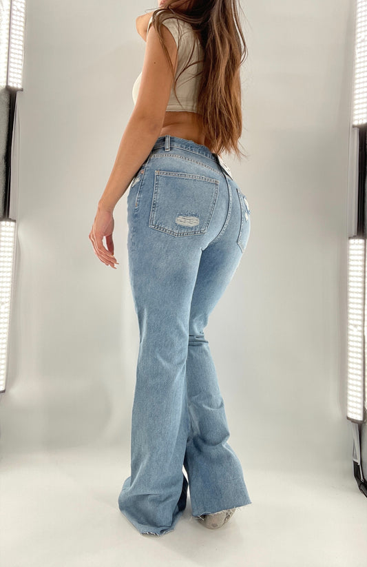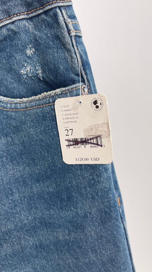 Free People Medium Wash Ripped Flare Jeans with Tags Attached (27)