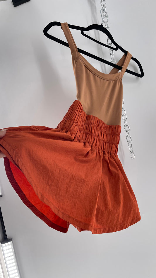 Free People Movement Tan Jumpsuit with Burnt Orange Parachute Shorts (XS)