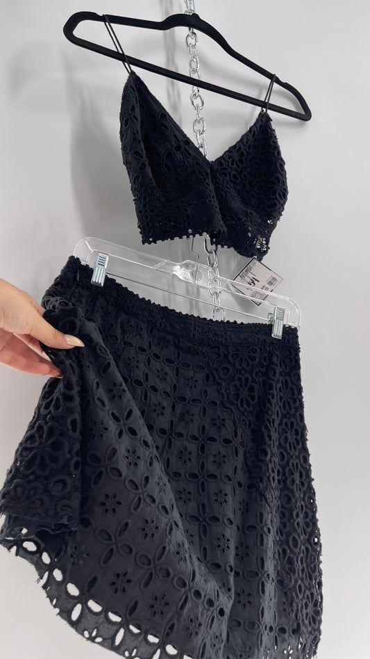 Free People Black Eyelet Lace Mini Skirt and Bustier Set (6)