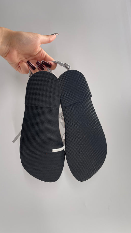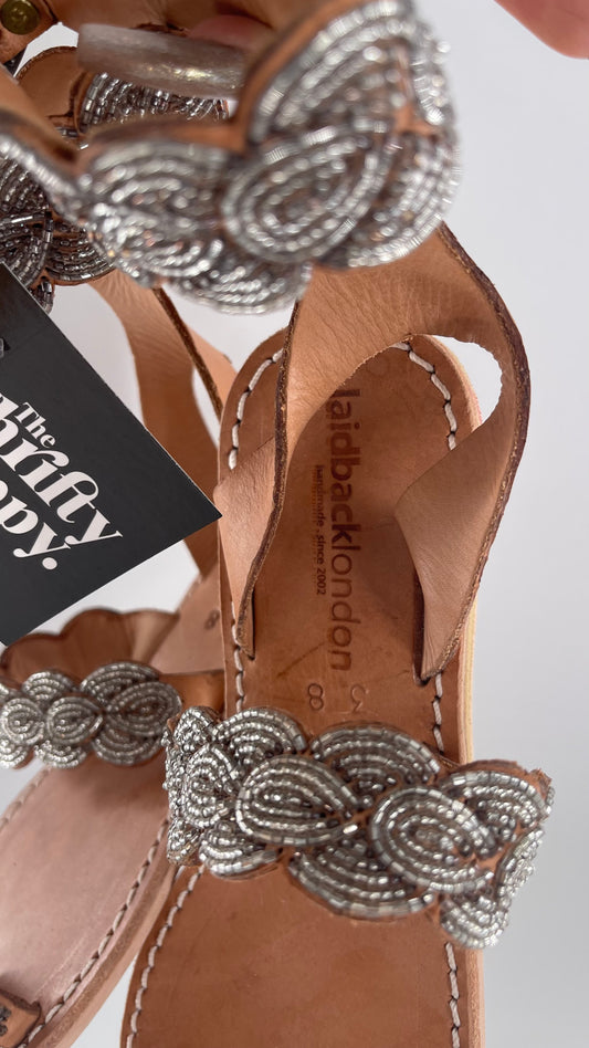Free People Laidback London Handmade Sandals with Tan Leather Straps Covered in Silver Beaded Details (38)
