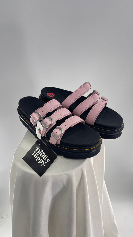 Dr. Martens Baby Pink Strappy Platform Sandal with Heavy Metal Buckle (10)