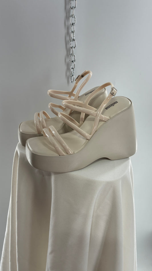 MELISSA Jelly Jessie Beige Chunky Wedge Platform Sandal (10)