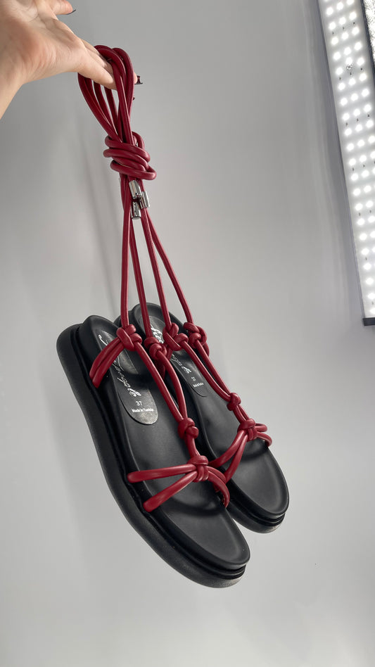Free People Red Leather Tie Up Sandal (37/6)