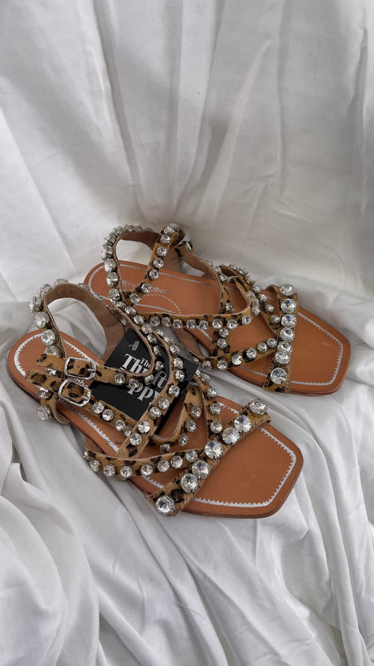 Jeffrey Campbell Rhinestone Encrusted Strappy Sandal with Cheetah Printed Cow Fur Straps (7)