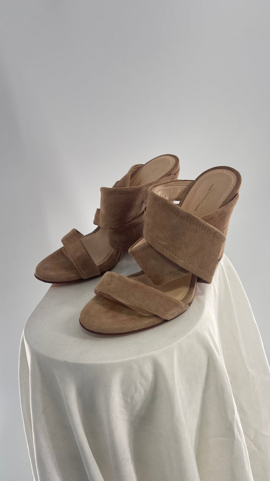 Ms.Albright Anthropologie Tan Suede Leather Strappy Wedge Heel (41)