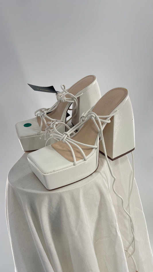 Liliana White Platform Block Heel Tie Up Heel with Tags Attached (5.5)