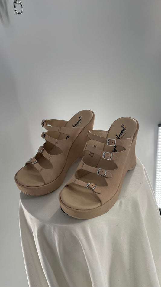 Free People Huffman Beige/Tan Leather Wedge Multiple Buckle Heel (37)