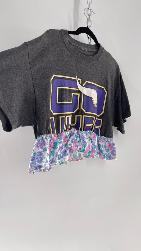 Urban Outfitters Reworked Go Vikings Sports T with Floral 80s Ruffle (M)