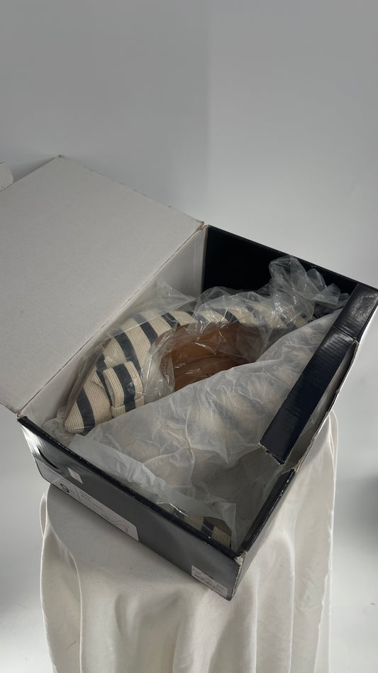 JCREW Cloth Off White and Blue Striped Bow Front Heel (9.5)