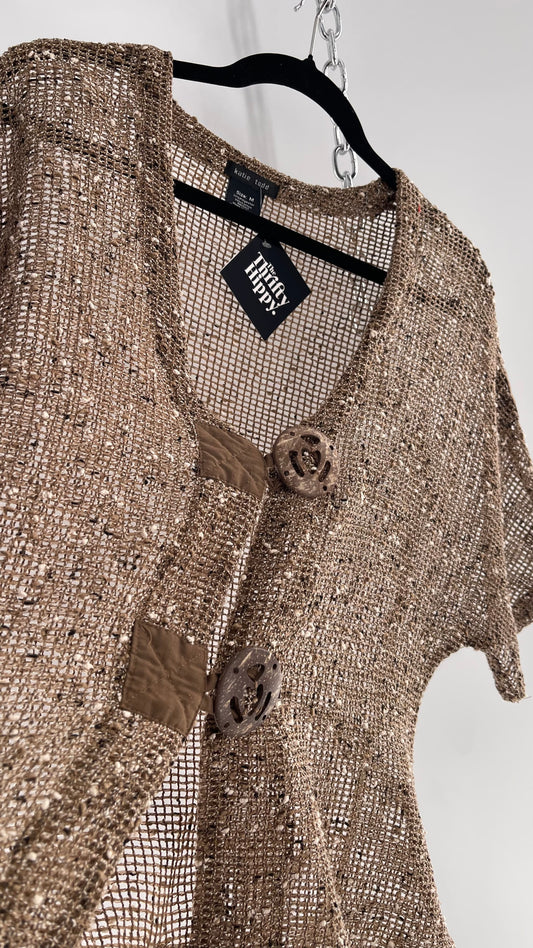 Netted Tropical Brown Short with Wooden Buttons (Medium)