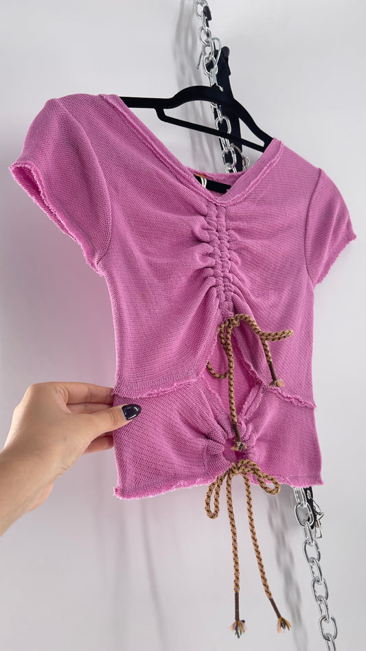 Free People Purple/Pink Gauze/Mesh Crop with Ruched Rope Bust + Cutout (XS)
