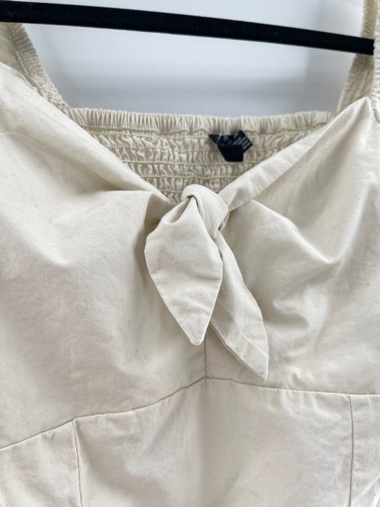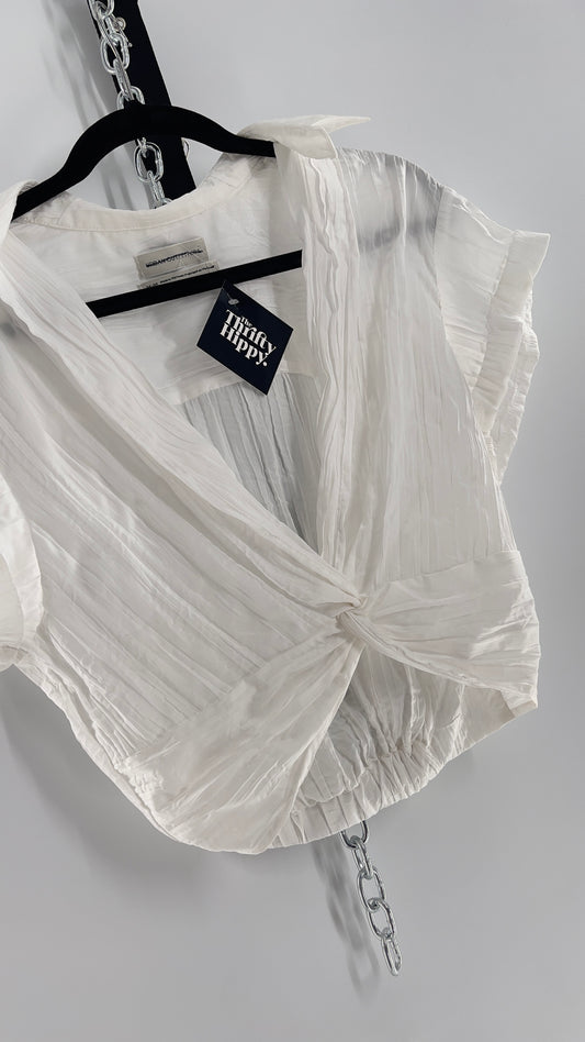 Urban Outfitters White Pleated/Crimped Tie Front Short Sleeve (Medium)