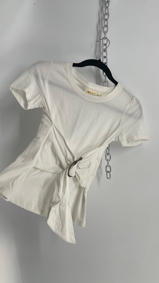 Maeve By Anthropologie Short Sleeve T Shirt, 100% Cotton with Metal Buckle and Fabric Sash Across Waist Size (XXS)