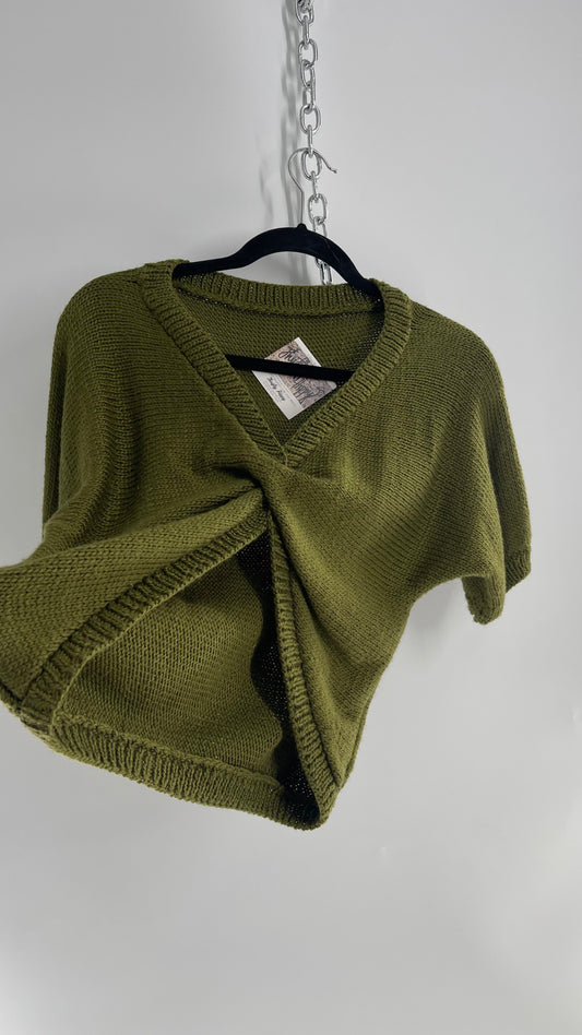 Vented Moss Green Knit Short Sleeve Reversible Sweater (Small)