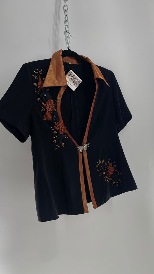 Vintage 1990s Floral Appliqué Embellished Embroidered Top with Butterfly Bust Closure (XL)