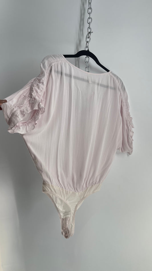 Intimately Free People Light Pink Bodysuit with Ruched Sleeve Detail (Small)