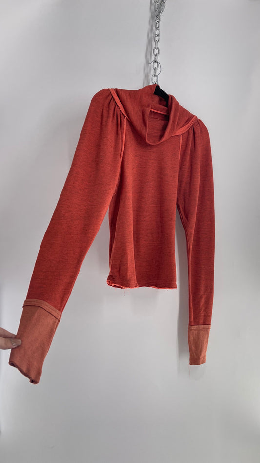 Free People Coral/Peach Turtle Neck Puff Shoulder Slouchy Sweater (Small)