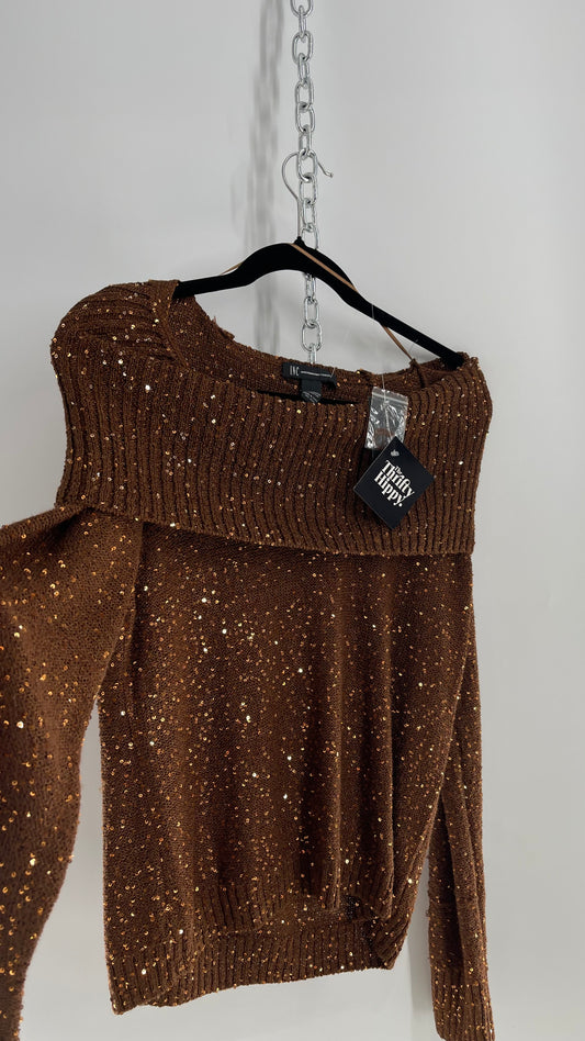 INC Bronze Knit Off the Shoulder Sweater with Sequins (XL)