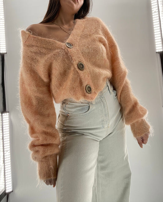 Free People Salmon Mohair Cropped Cardigan (Small)