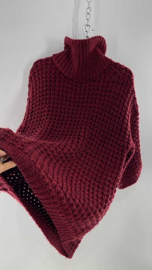 Anthropologie Thick Knit Burgundy/Maroon Short Sleeve Slouchy Turtle/Mock Neck Sweater (Large)