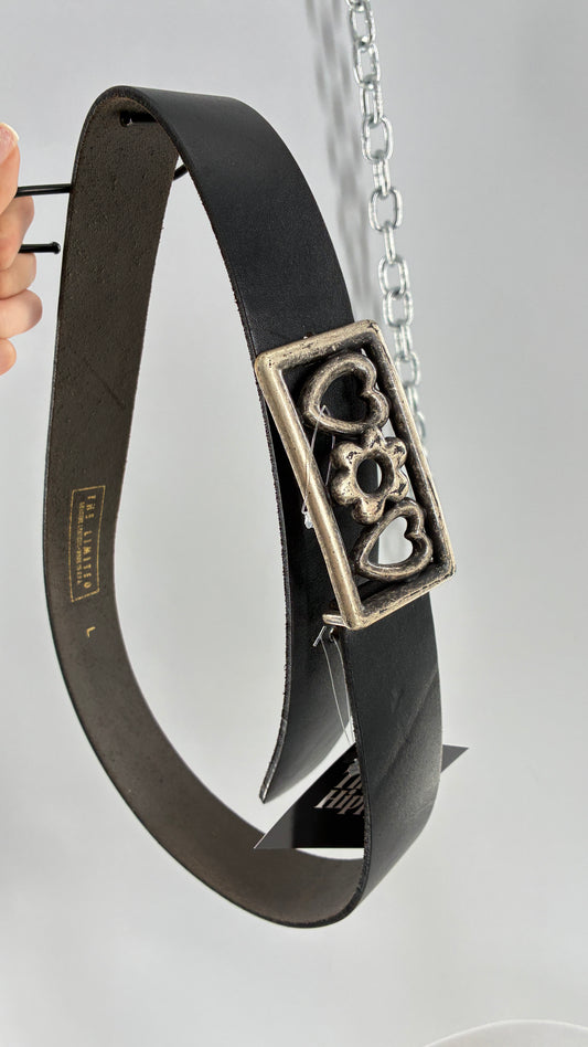 Vintage THE LIMITED Black Leather Belt with Heavy Metal Buckle (Large)
