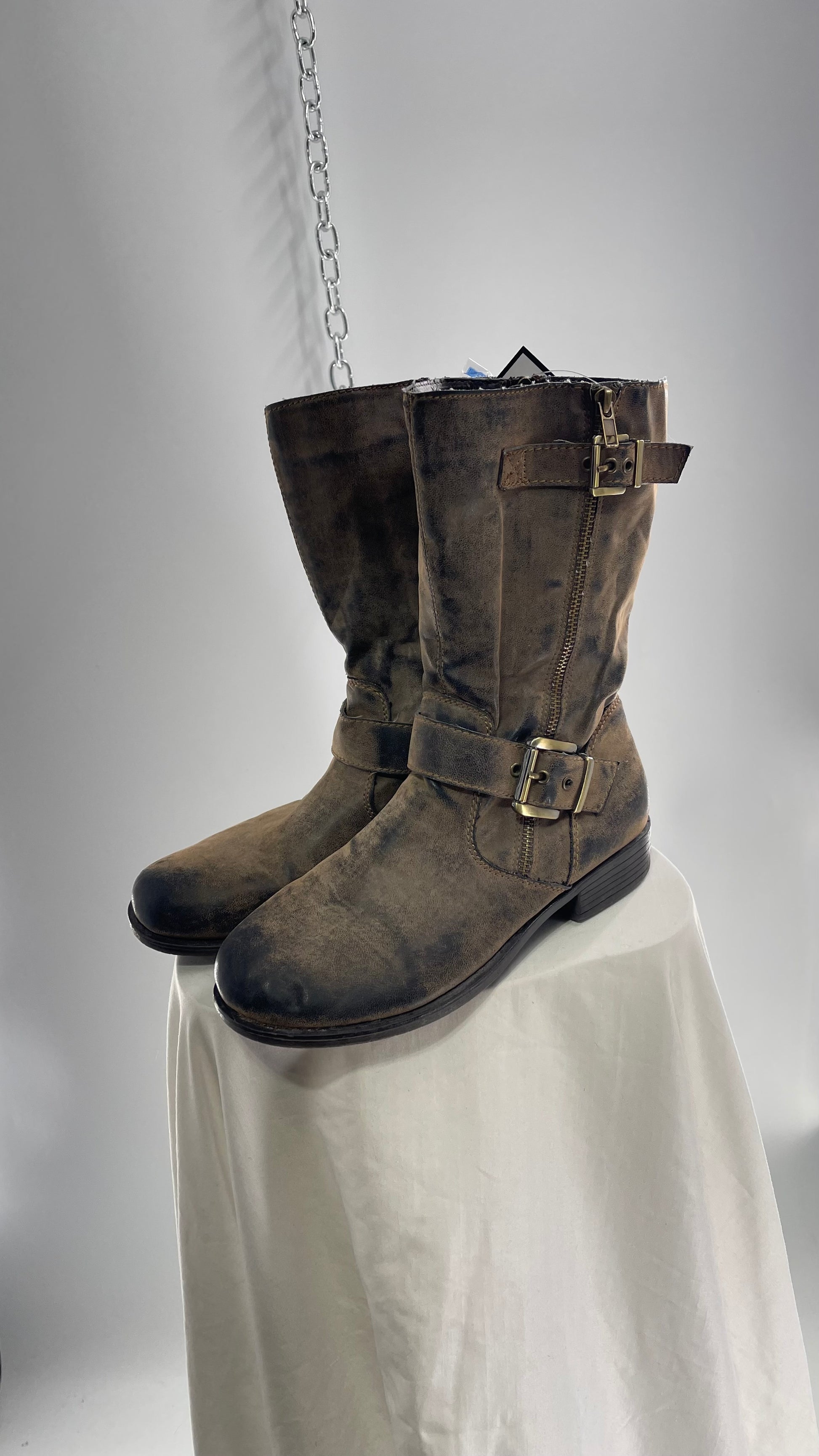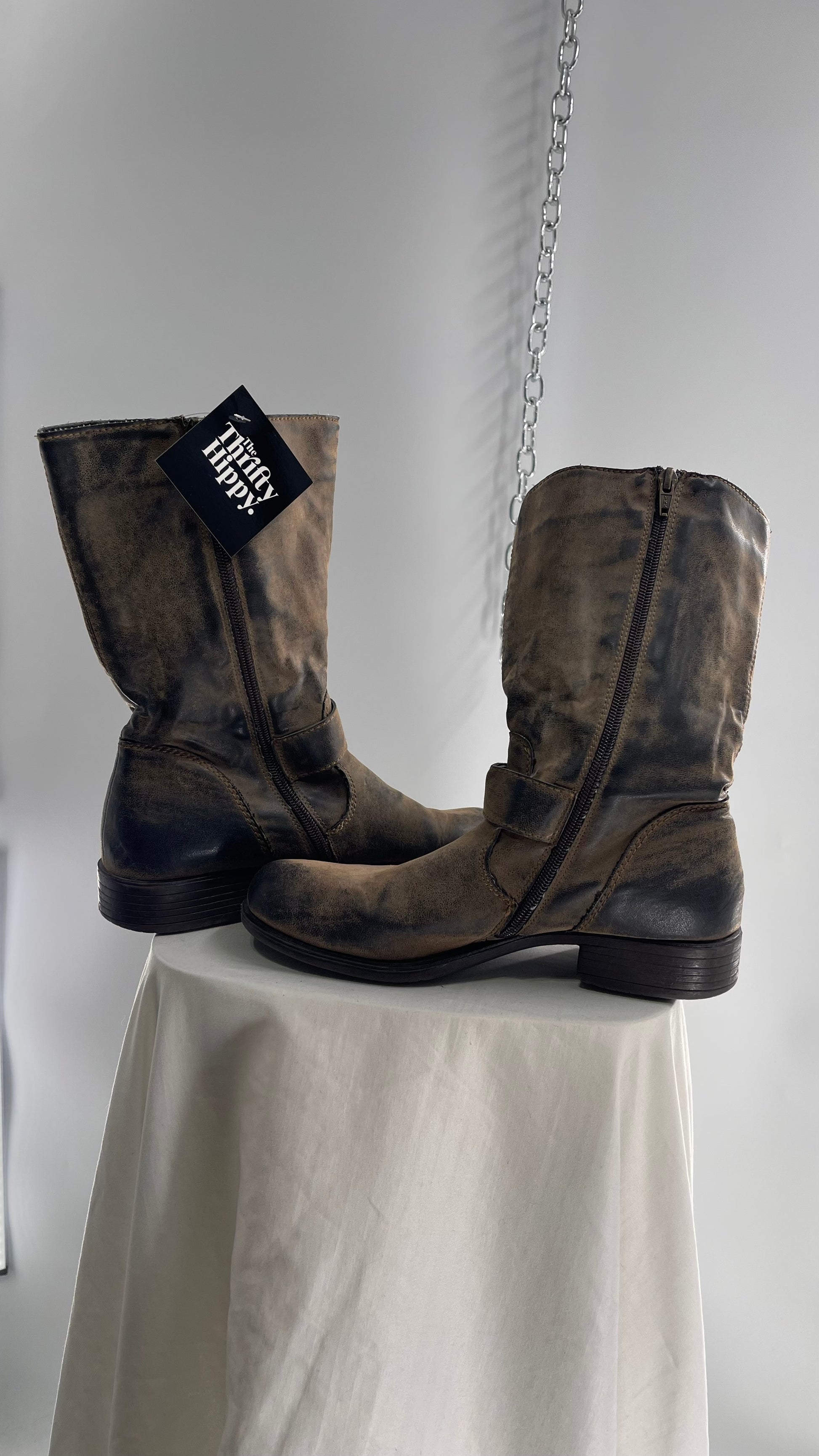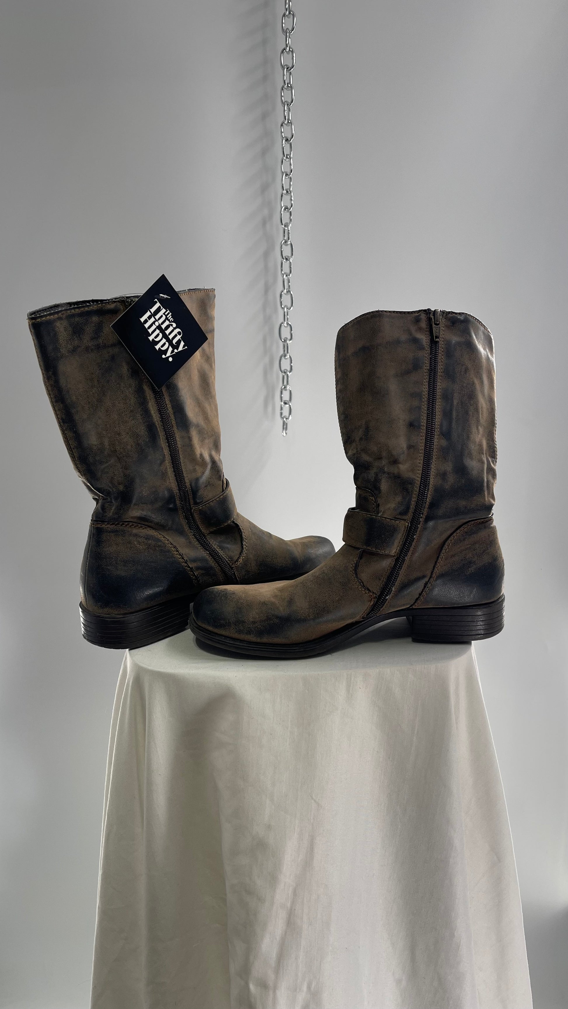 Vintage Distressed Looking Vegan Leather Motorcycle Boots (10)