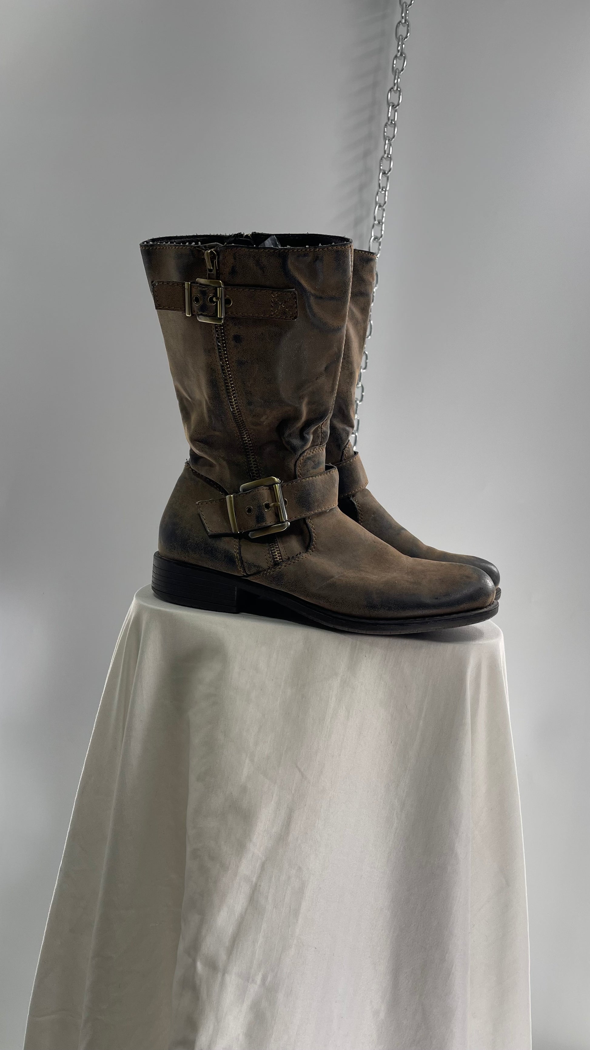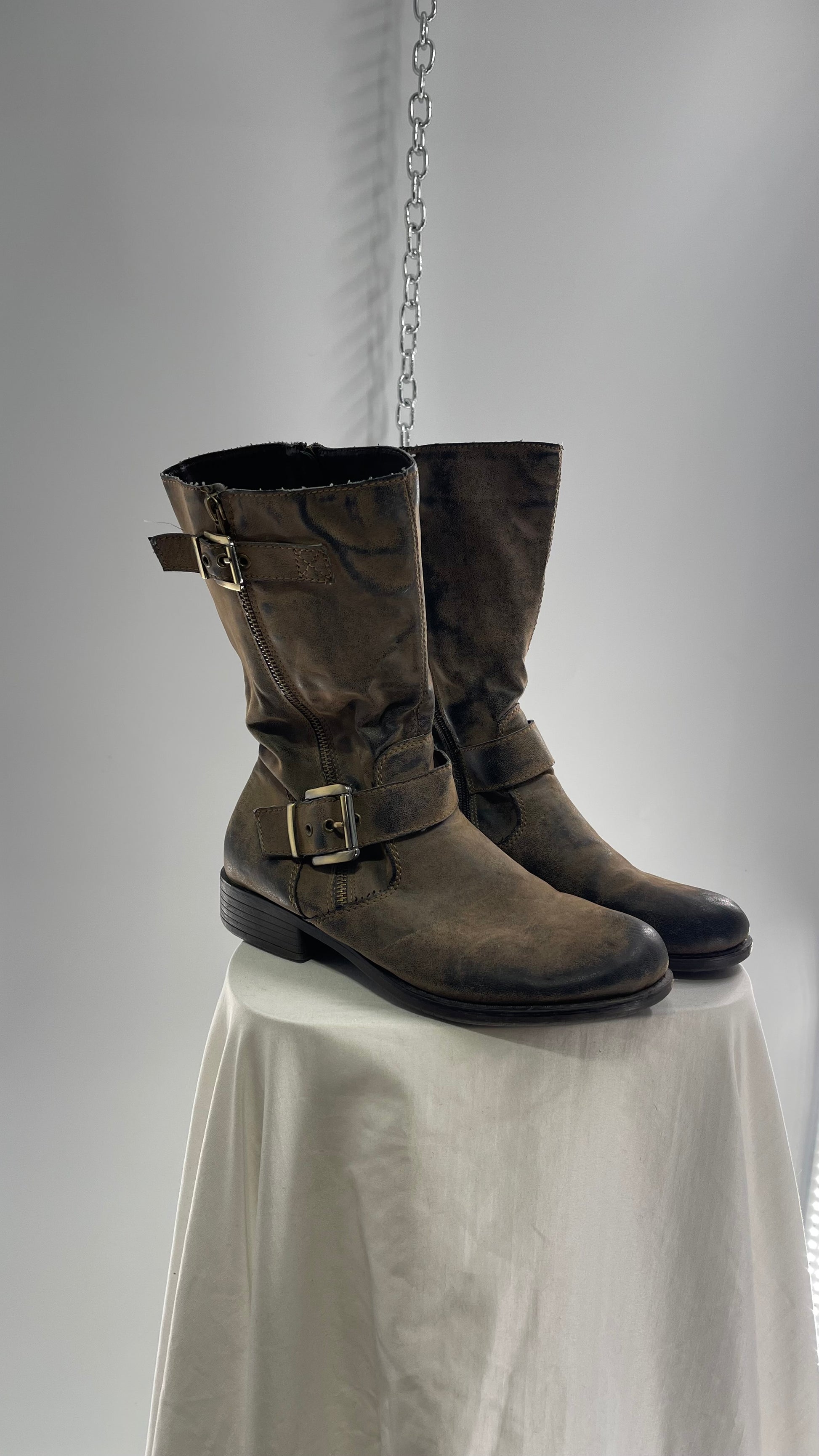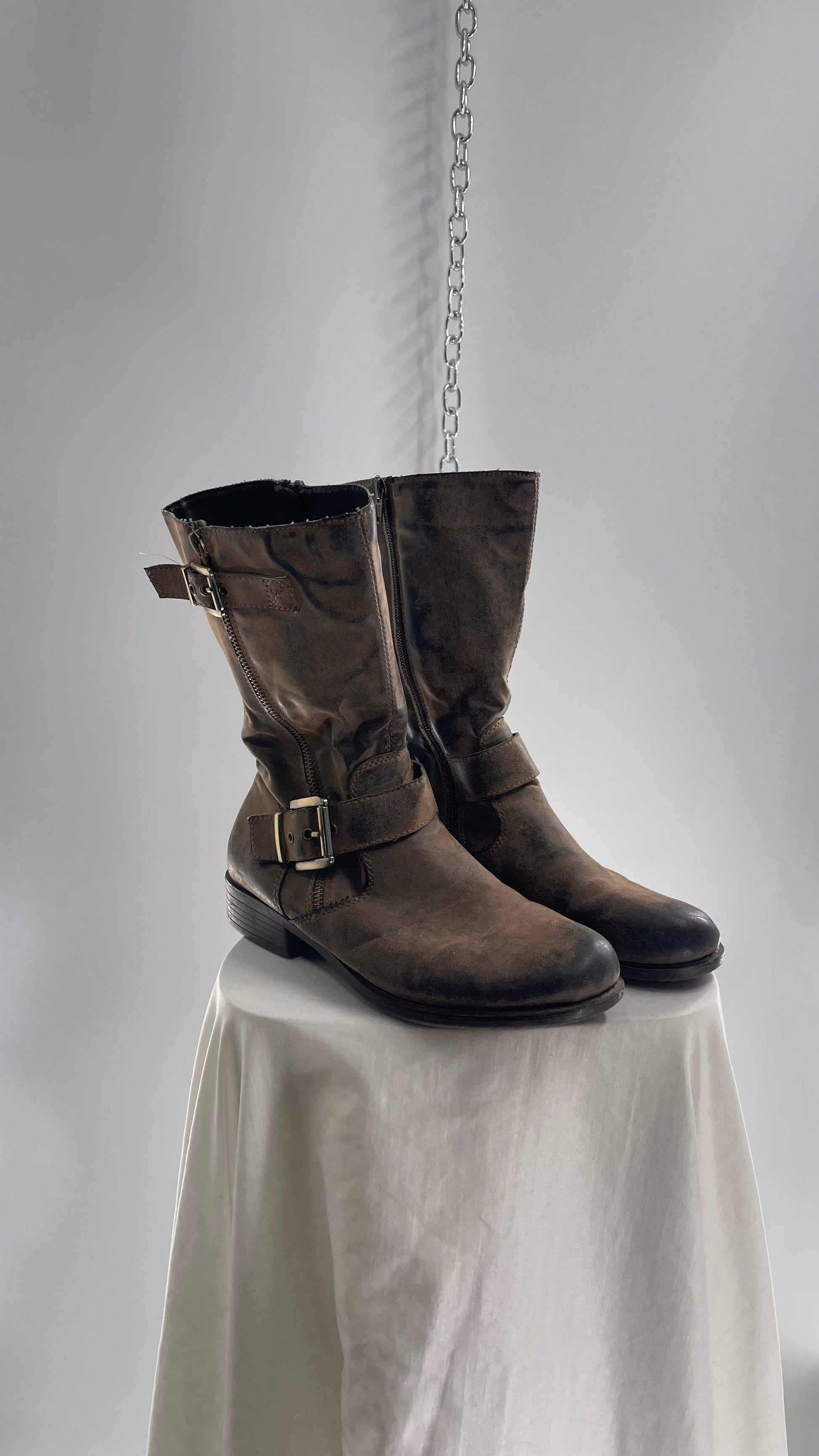 Vintage Distressed Looking Vegan Leather Motorcycle Boots (10)