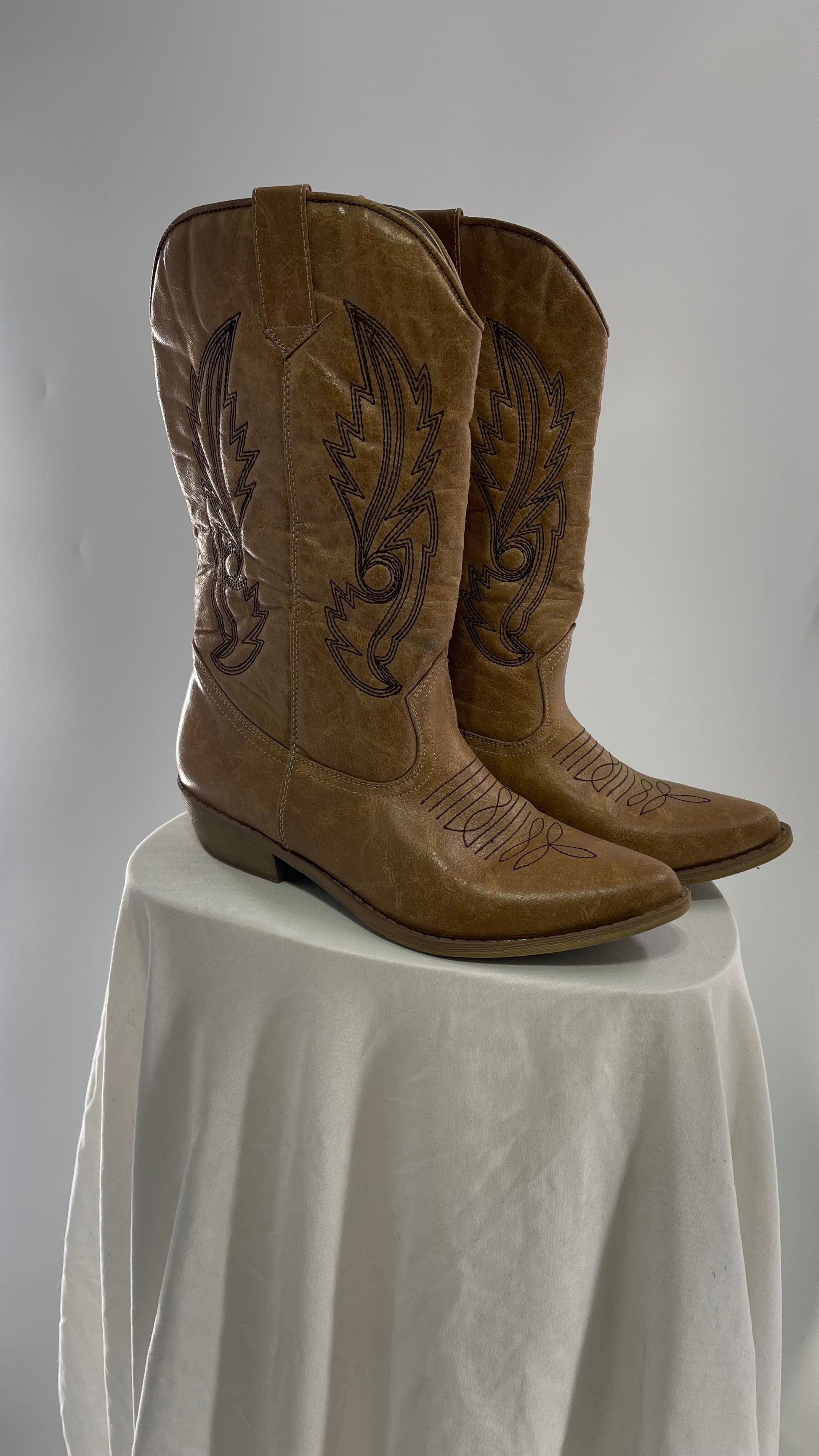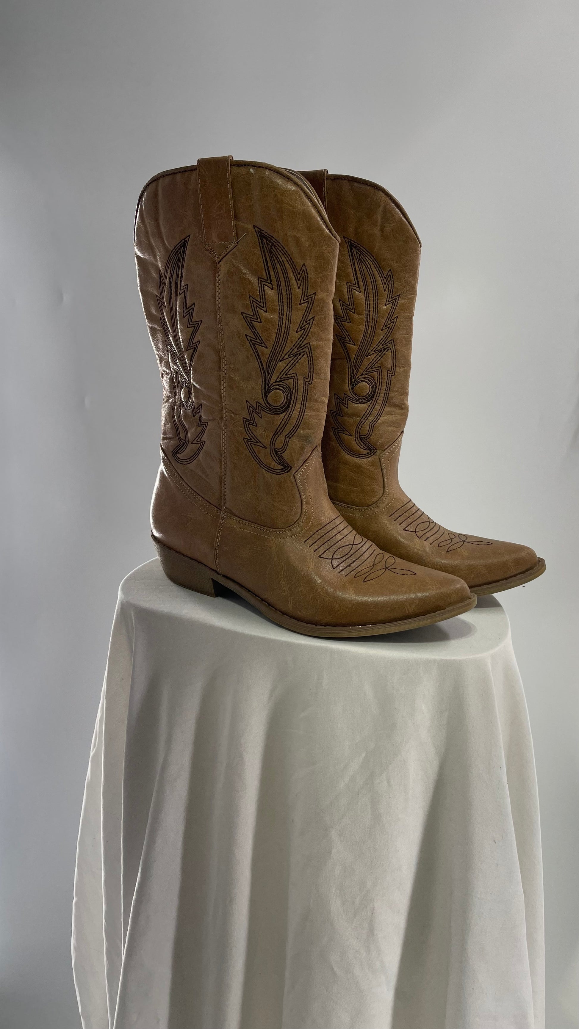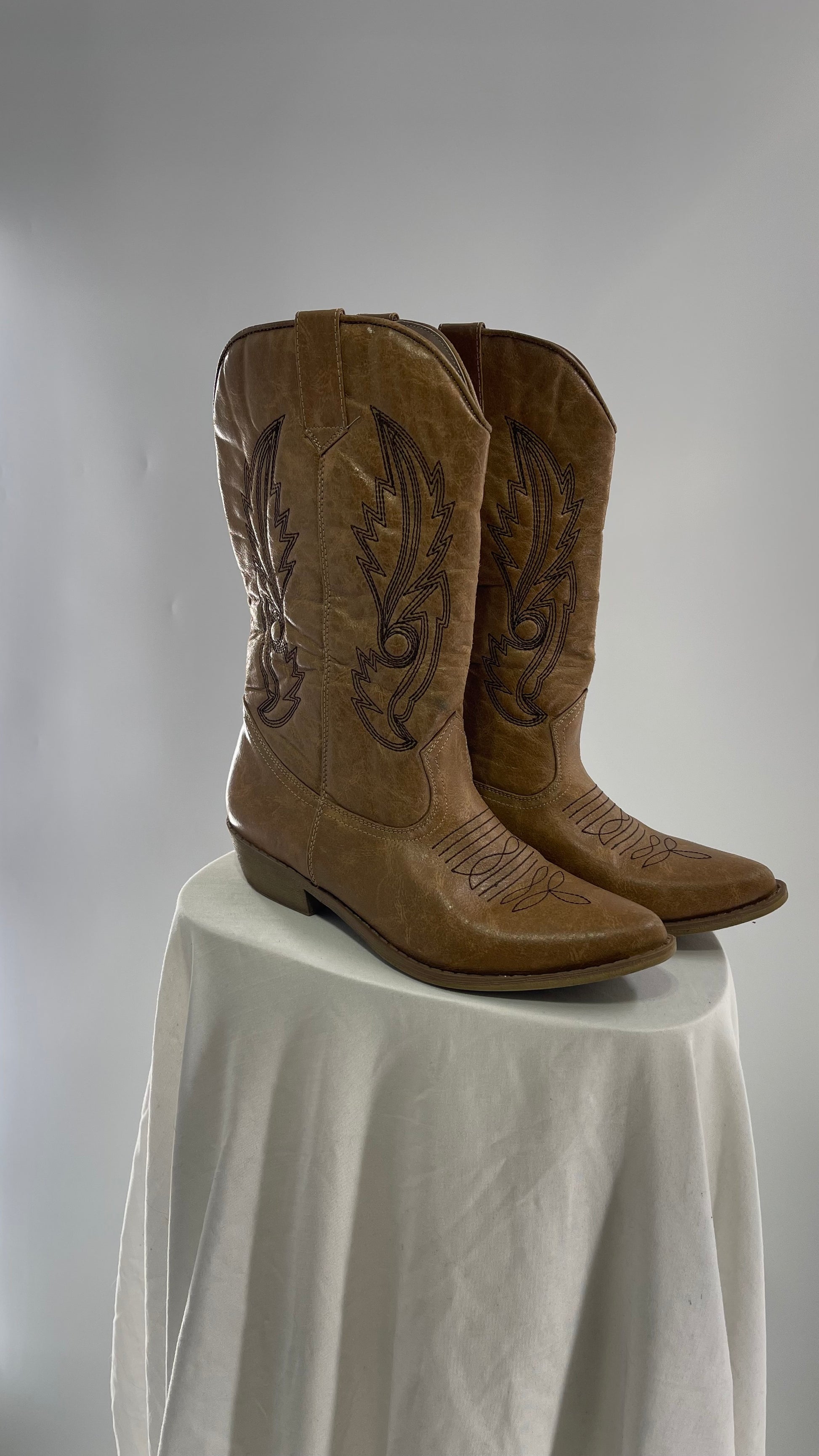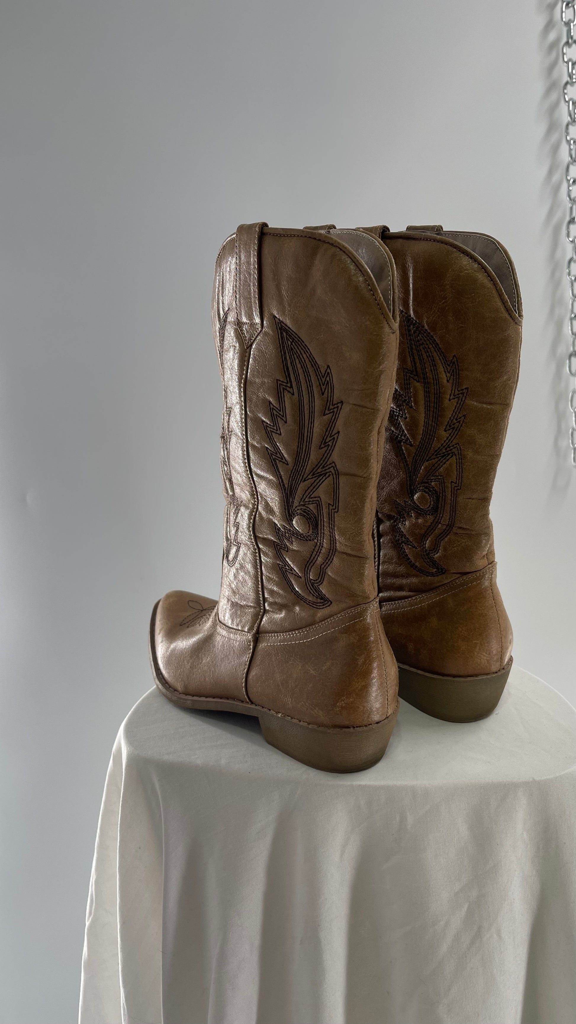 Vintage Coconuts Light Vegan Leather Cowboy Boots (7.5)