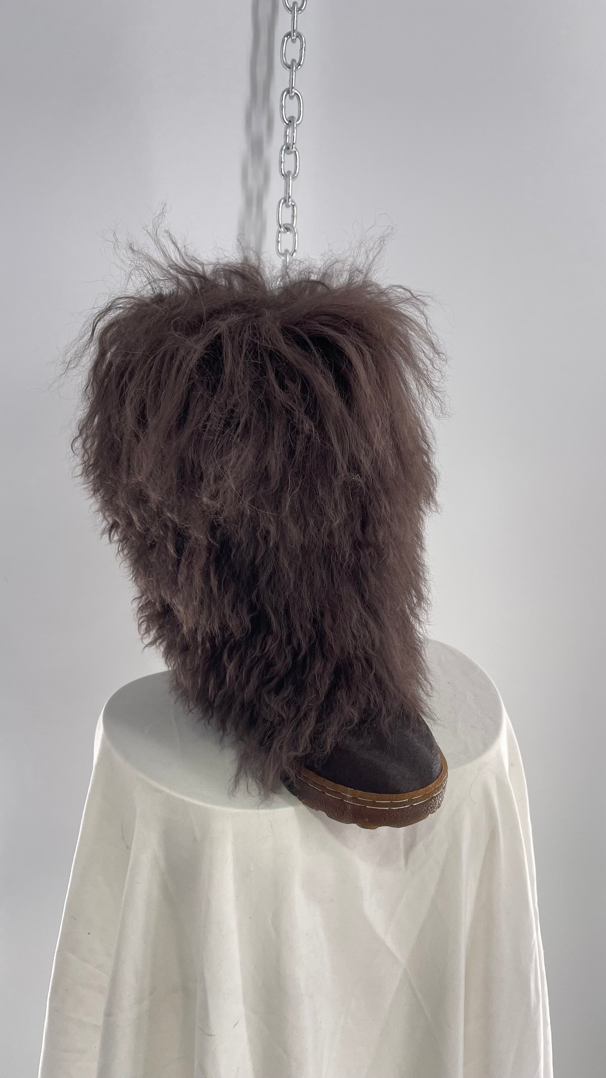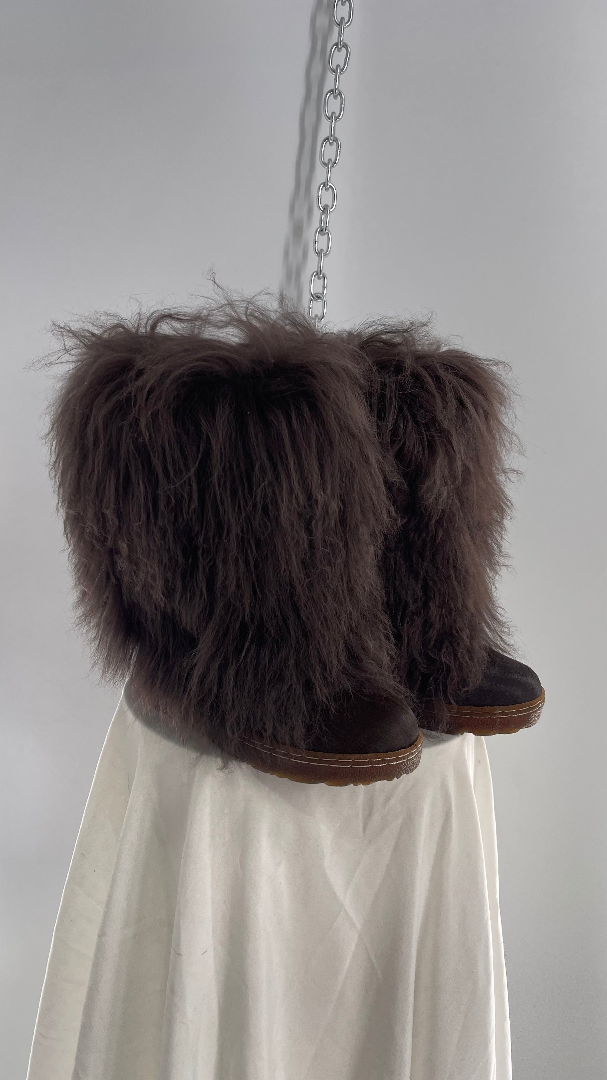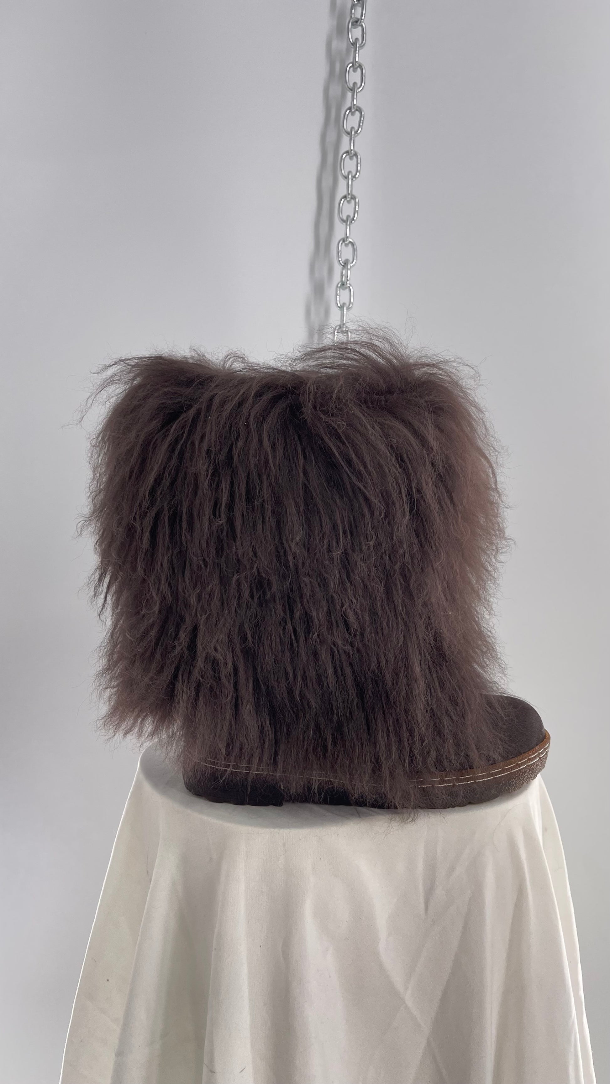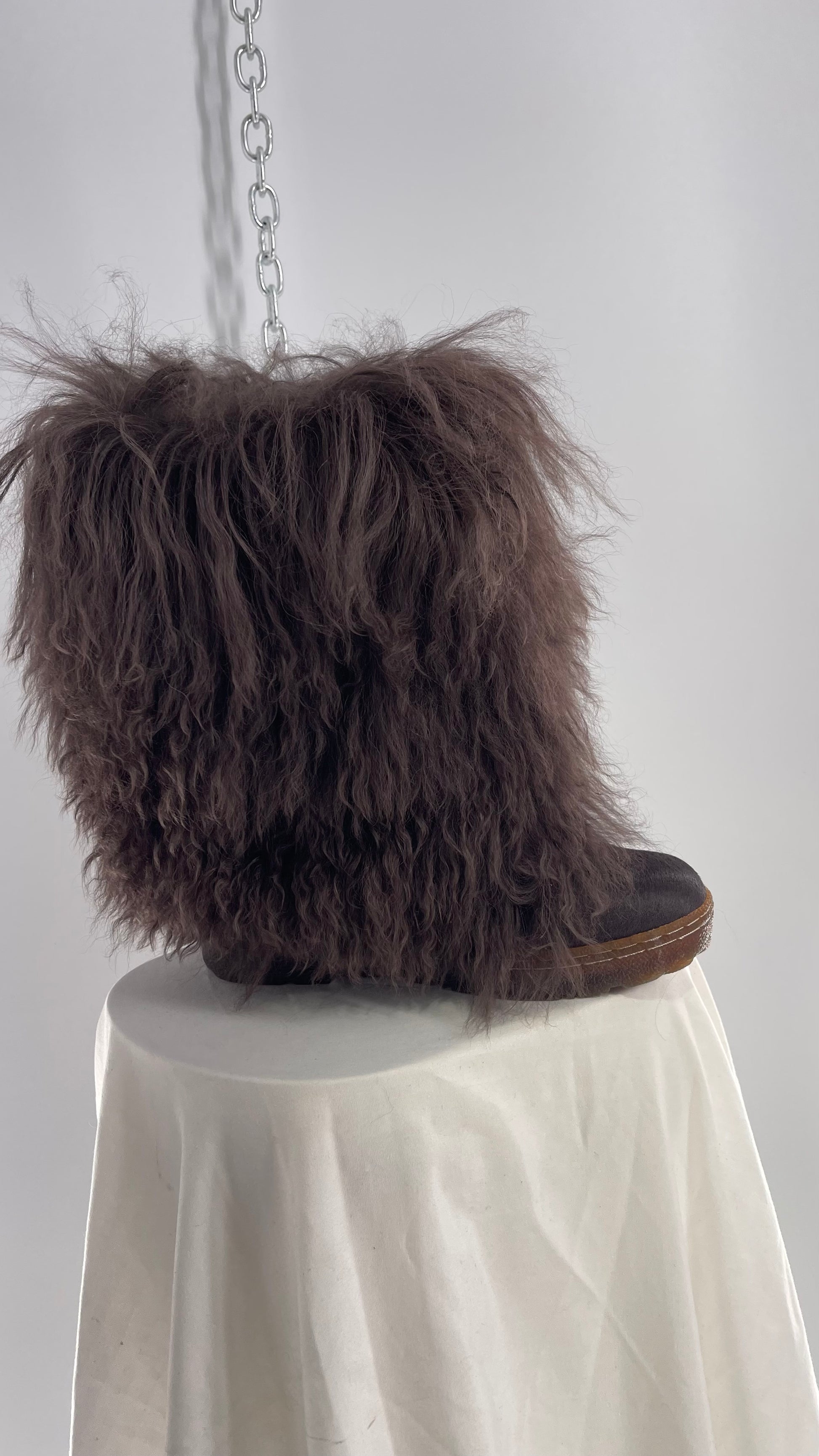 Vintage BEARPAW Boetis Chocolate Cow Hair and Curly Lamb Fur Exaggerated Fuzzy Boots (7)
